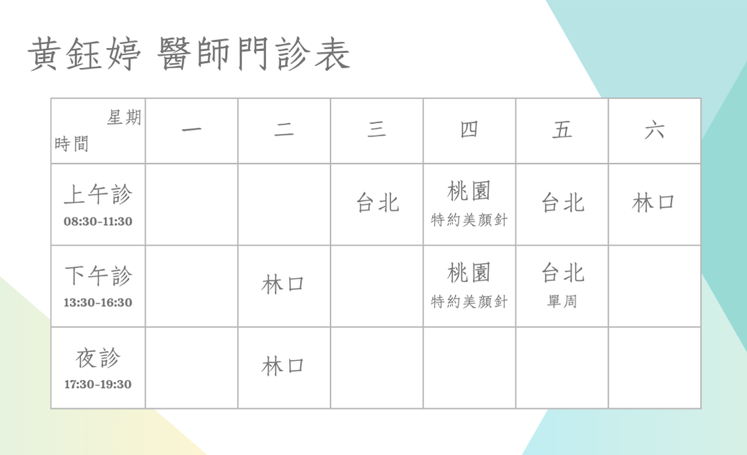 黃鈺婷醫師門診時段